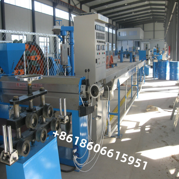 This production line contains:lut barrel pay off machine,straighten,main machine,injection machine,control case,tank,double wheel capstan,accumulator,double shaft take up and other equipments.The chosen equipments:copper wire preheater,printer,OD measuring instrument,spark tester and PLC control.